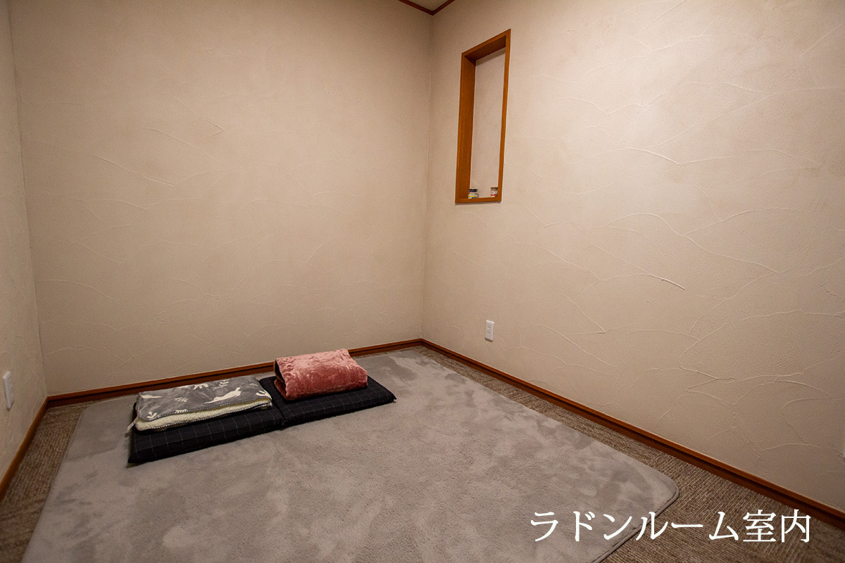 ラドン浴ルーム内において一定時間過ごすことで効果がありますので、読書をするも良し、目を閉じて日頃の疲れを癒すも良し、ご自由にお過ごしください。